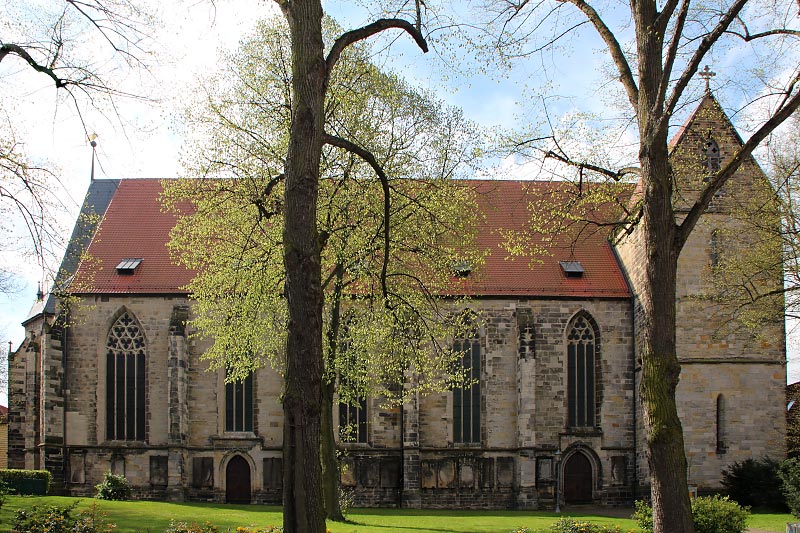 Bauliche Veränderungen hat die Hallenkirche im 14. Jh. erfahren; im 15. Jh. wurde das Westwerk erbaut, deren Türme leider „bis heute nicht über das Kirchendach hinausgewachsen sind“. Ursprünglich sollten nämlich auf dem mächtigen Turmunterbau dieser dreischiffigen spätgotischen Hallenkirche Doppeltürme errichtet werden. Sie wurden aber nie gebaut.