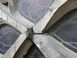 Risse im Maßwerk mussten geschlossen werden und sogar ganze Stücke waren herausgebrochen und wurden neu angesetzt.