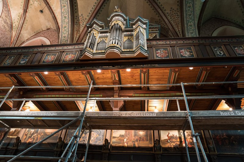 Im Jahr 2025 haben wir in einem ersten Schritt die Kirchengemeinde Georg Calixt finanziell unterstützt, die vorhanden Strahler auf LED-Technik umzustellen, um Chorraum, Taufbecken, Orgel, Kruzifix und Epithaph in neuem Licht erstrahlen zu lassen.